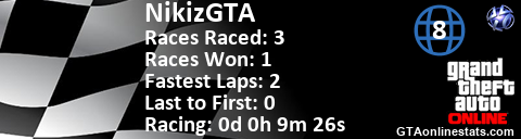 <a href="http://GTAonlinestats.com/showplayer/NikizGTA"><img src="http://GTAonlinestats.com/racesignature/NikizGTA/sig.png" alt="NikizGTA" border="0" /></a>