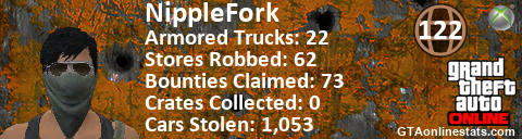 <a href="http://GTAonlinestats.com/showplayer/NippleFork"><img src="http://GTAonlinestats.com/crimesignature/NippleFork/sig.png" alt="NippleFork" border="0" /></a>