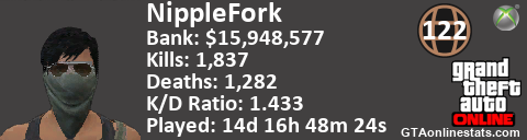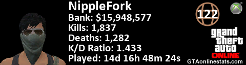 <a href="http://GTAonlinestats.com/showplayer/NippleFork"><img src="http://GTAonlinestats.com/dmsignature/NippleFork/sig.png" alt="NippleFork" border="0" /></a>