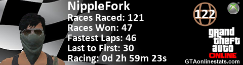 [URL=http://GTAonlinestats.com/showplayer/NippleFork][IMG]http://GTAonlinestats.com/racesignature/NippleFork/sig.png[/IMG][/URL]