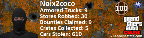 <a href="http://GTAonlinestats.com/showplayer/Noix2coco"><img src="http://GTAonlinestats.com/signature/Noix2coco/sig.png" alt="Noix2coco" border="0" /></a>