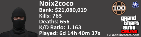 <a href="http://GTAonlinestats.com/showplayer/Noix2coco"><img src="http://GTAonlinestats.com/greysignature/Noix2coco/sig.png" alt="Noix2coco" border="0" /></a>