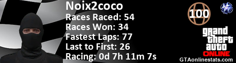 <a href="http://GTAonlinestats.com/showplayer/Noix2coco"><img src="http://GTAonlinestats.com/racesignature/Noix2coco/sig.png" alt="Noix2coco" border="0" /></a>