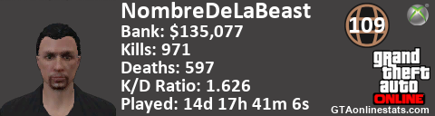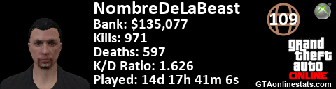 <a href="http://GTAonlinestats.com/showplayer/NombreDeLaBeast"><img src="http://GTAonlinestats.com/dmsignature/NombreDeLaBeast/sig.png" alt="NombreDeLaBeast" border="0" /></a>