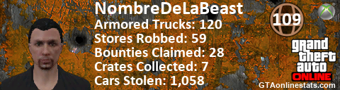 [URL=http://GTAonlinestats.com/showplayer/NombreDeLaBeast][IMG]http://GTAonlinestats.com/crimesignature/NombreDeLaBeast/sig.png[/IMG][/URL]
