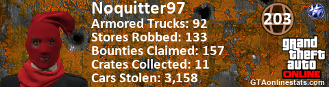 [URL=http://GTAonlinestats.com/showplayer/Noquitter97][IMG]http://GTAonlinestats.com/crimesignature/Noquitter97/sig.png[/IMG][/URL]