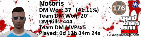 [URL=http://GTAonlinestats.com/showplayer/Notoris][IMG]http://GTAonlinestats.com/signature/Notoris/sig.png[/IMG][/URL]