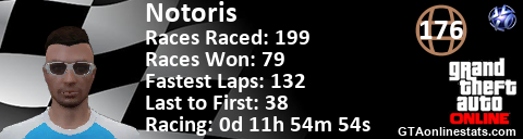 [URL=http://GTAonlinestats.com/showplayer/Notoris][IMG]http://GTAonlinestats.com/racesignature/Notoris/sig.png[/IMG][/URL]