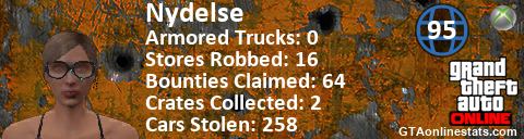 [URL=http://GTAonlinestats.com/showplayer/Nydelse][IMG]http://GTAonlinestats.com/crimesignature/Nydelse/sig.png[/IMG][/URL]