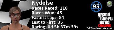 [URL=http://GTAonlinestats.com/showplayer/Nydelse][IMG]http://GTAonlinestats.com/racesignature/Nydelse/sig.png[/IMG][/URL]