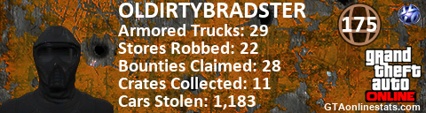 [URL=http://GTAonlinestats.com/showplayer/OLDIRTYBRADSTER][IMG]http://GTAonlinestats.com/greysignature/OLDIRTYBRADSTER/sig.png[/IMG][/URL]