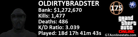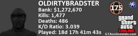 <a href="http://GTAonlinestats.com/showplayer/OLDIRTYBRADSTER"><img src="http://GTAonlinestats.com/signature/OLDIRTYBRADSTER/sig.png" alt="OLDIRTYBRADSTER" border="0" /></a>