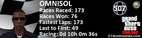 <a href="http://GTAonlinestats.com/showplayer/OMNISOL"><img src="http://GTAonlinestats.com/racesignature/OMNISOL/sig.png" alt="OMNISOL" border="0" /></a>