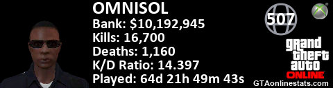 <a href="http://GTAonlinestats.com/showplayer/OMNISOL"><img src="http://GTAonlinestats.com/randomsignature/OMNISOL/sig.png" alt="OMNISOL" border="0" /></a>