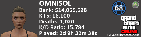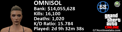 <a href="http://GTAonlinestats.com/showplayer/OMNISOL/2"><img src="http://GTAonlinestats.com/signature/OMNISOL/2/sig.png" alt="OMNISOL" border="0" /></a>