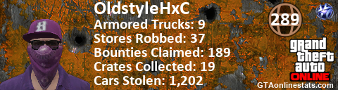 [URL=http://GTAonlinestats.com/showplayer/OldstyleHxC][IMG]http://GTAonlinestats.com/crimesignature/OldstyleHxC/sig.png[/IMG][/URL]