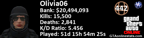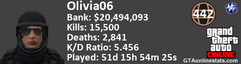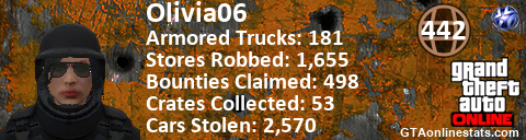 <a href="http://GTAonlinestats.com/showplayer/Olivia06"><img src="http://GTAonlinestats.com/randomsignature/Olivia06/sig.png" alt="Olivia06" border="0" /></a>