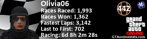 <a href="http://GTAonlinestats.com/showplayer/Olivia06"><img src="http://GTAonlinestats.com/racesignature/Olivia06/sig.png" alt="Olivia06" border="0" /></a>
