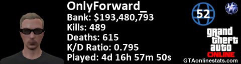 [URL=http://GTAonlinestats.com/showplayer/OnlyForward_/2][IMG]http://GTAonlinestats.com/randomsignature/OnlyForward_/2/sig.png[/IMG][/URL]