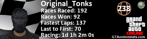 [URL=http://GTAonlinestats.com/showplayer/Original_Tonks][IMG]http://GTAonlinestats.com/racesignature/Original_Tonks/sig.png[/IMG][/URL]