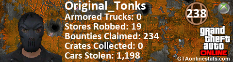 [URL=http://GTAonlinestats.com/showplayer/Original_Tonks][IMG]http://GTAonlinestats.com/randomsignature/Original_Tonks/sig.png[/IMG][/URL]