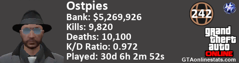<a href="http://GTAonlinestats.com/showplayer/Ostpies"><img src="http://GTAonlinestats.com/signature/Ostpies/sig.png" alt="Ostpies" border="0" /></a>