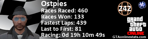 <a href="http://GTAonlinestats.com/showplayer/Ostpies"><img src="http://GTAonlinestats.com/racesignature/Ostpies/sig.png" alt="Ostpies" border="0" /></a>