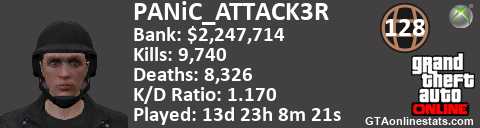 <a href="http://GTAonlinestats.com/showplayer/PANiC_ATTACK3R"><img src="http://GTAonlinestats.com/signature/PANiC_ATTACK3R/sig.png" alt="PANiC_ATTACK3R" border="0" /></a>