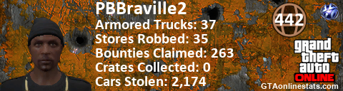 [URL=http://GTAonlinestats.com/showplayer/PBBraville2][IMG]http://GTAonlinestats.com/signature/PBBraville2/sig.png[/IMG][/URL]