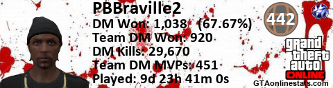 [URL=http://GTAonlinestats.com/showplayer/PBBraville2][IMG]http://GTAonlinestats.com/dmsignature/PBBraville2/sig.png[/IMG][/URL]