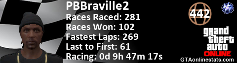 <a href="http://GTAonlinestats.com/showplayer/PBBraville2"><img src="http://GTAonlinestats.com/racesignature/PBBraville2/sig.png" alt="PBBraville2" border="0" /></a>