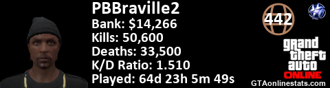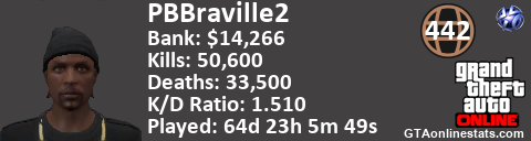 <a href="http://GTAonlinestats.com/showplayer/PBBraville2"><img src="http://GTAonlinestats.com/signature/PBBraville2/sig.png" alt="PBBraville2" border="0" /></a>