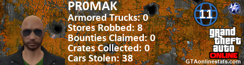 [URL=http://GTAonlinestats.com/showplayer/PR0MAK][IMG]http://GTAonlinestats.com/crimesignature/PR0MAK/sig.png[/IMG][/URL]