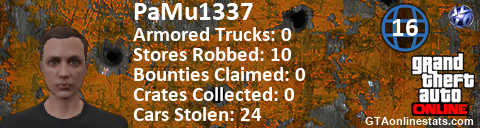 [URL=http://GTAonlinestats.com/showplayer/PaMu1337][IMG]http://GTAonlinestats.com/crimesignature/PaMu1337/sig.png[/IMG][/URL]