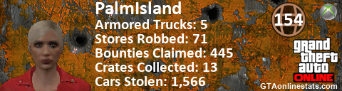 [URL=http://GTAonlinestats.com/showplayer/PalmIsland][IMG]http://GTAonlinestats.com/randomsignature/PalmIsland/sig.png[/IMG][/URL]