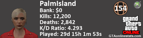 [URL=http://GTAonlinestats.com/showplayer/PalmIsland][IMG]http://GTAonlinestats.com/dmsignature/PalmIsland/sig.png[/IMG][/URL]