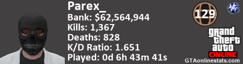 <a href="http://GTAonlinestats.com/showplayer/Parex_/2"><img src="http://GTAonlinestats.com/signature/Parex_/2/sig.png" alt="Parex_" border="0" /></a>