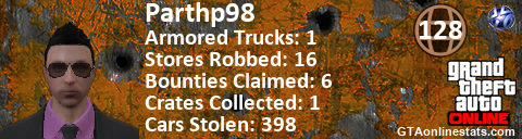[URL=http://GTAonlinestats.com/showplayer/Parthp98][IMG]http://GTAonlinestats.com/crimesignature/Parthp98/sig.png[/IMG][/URL]