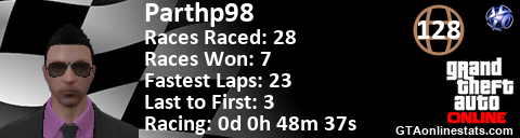 [URL=http://GTAonlinestats.com/showplayer/Parthp98][IMG]http://GTAonlinestats.com/racesignature/Parthp98/sig.png[/IMG][/URL]