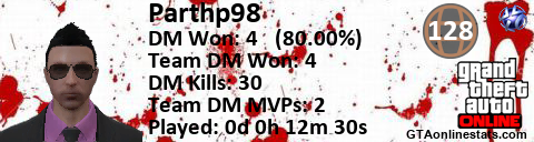 [URL=http://GTAonlinestats.com/showplayer/Parthp98][IMG]http://GTAonlinestats.com/dmsignature/Parthp98/sig.png[/IMG][/URL]