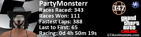 <a href="http://GTAonlinestats.com/showplayer/PartyMonsterr"><img src="http://GTAonlinestats.com/racesignature/PartyMonsterr/sig.png" alt="PartyMonsterr" border="0" /></a>