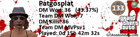 [URL=http://GTAonlinestats.com/showplayer/Patgosplat/2][IMG]http://GTAonlinestats.com/dmsignature/Patgosplat/2/sig.png[/IMG][/URL]