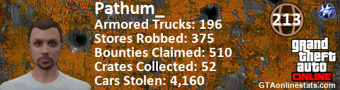 [URL=http://GTAonlinestats.com/showplayer/Pathum_][IMG]http://GTAonlinestats.com/randomsignature/Pathum_/sig.png[/IMG][/URL]