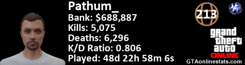 <a href="http://GTAonlinestats.com/showplayer/Pathum_"><img src="http://GTAonlinestats.com/dmsignature/Pathum_/sig.png" alt="Pathum_" border="0" /></a>