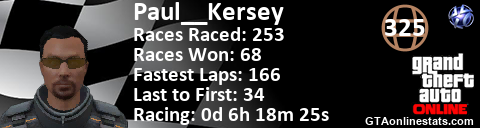 [URL=http://GTAonlinestats.com/showplayer/Paul__Kersey][IMG]http://GTAonlinestats.com/racesignature/Paul__Kersey/sig.png[/IMG][/URL]