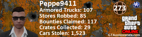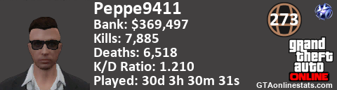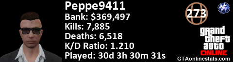 <a href="http://GTAonlinestats.com/showplayer/Peppe9411"><img src="http://GTAonlinestats.com/randomsignature/Peppe9411/sig.png" alt="Peppe9411" border="0" /></a>