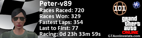 <a href="http://GTAonlinestats.com/showplayer/Peter-v89"><img src="http://GTAonlinestats.com/racesignature/Peter-v89/sig.png" alt="Peter-v89" border="0" /></a>