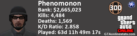 <a href="http://GTAonlinestats.com/showplayer/Phenomonon"><img src="http://GTAonlinestats.com/dmsignature/Phenomonon/sig.png" alt="Phenomonon" border="0" /></a>