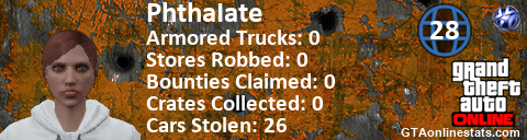 [URL=http://GTAonlinestats.com/showplayer/PhthaIate/2][IMG]http://GTAonlinestats.com/crimesignature/PhthaIate/2/sig.png[/IMG][/URL]