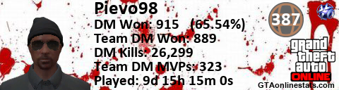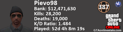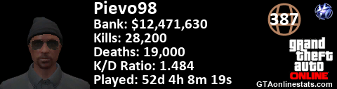 <a href="http://GTAonlinestats.com/showplayer/Pievo98"><img src="http://GTAonlinestats.com/dmsignature/Pievo98/sig.png" alt="Pievo98" border="0" /></a>
